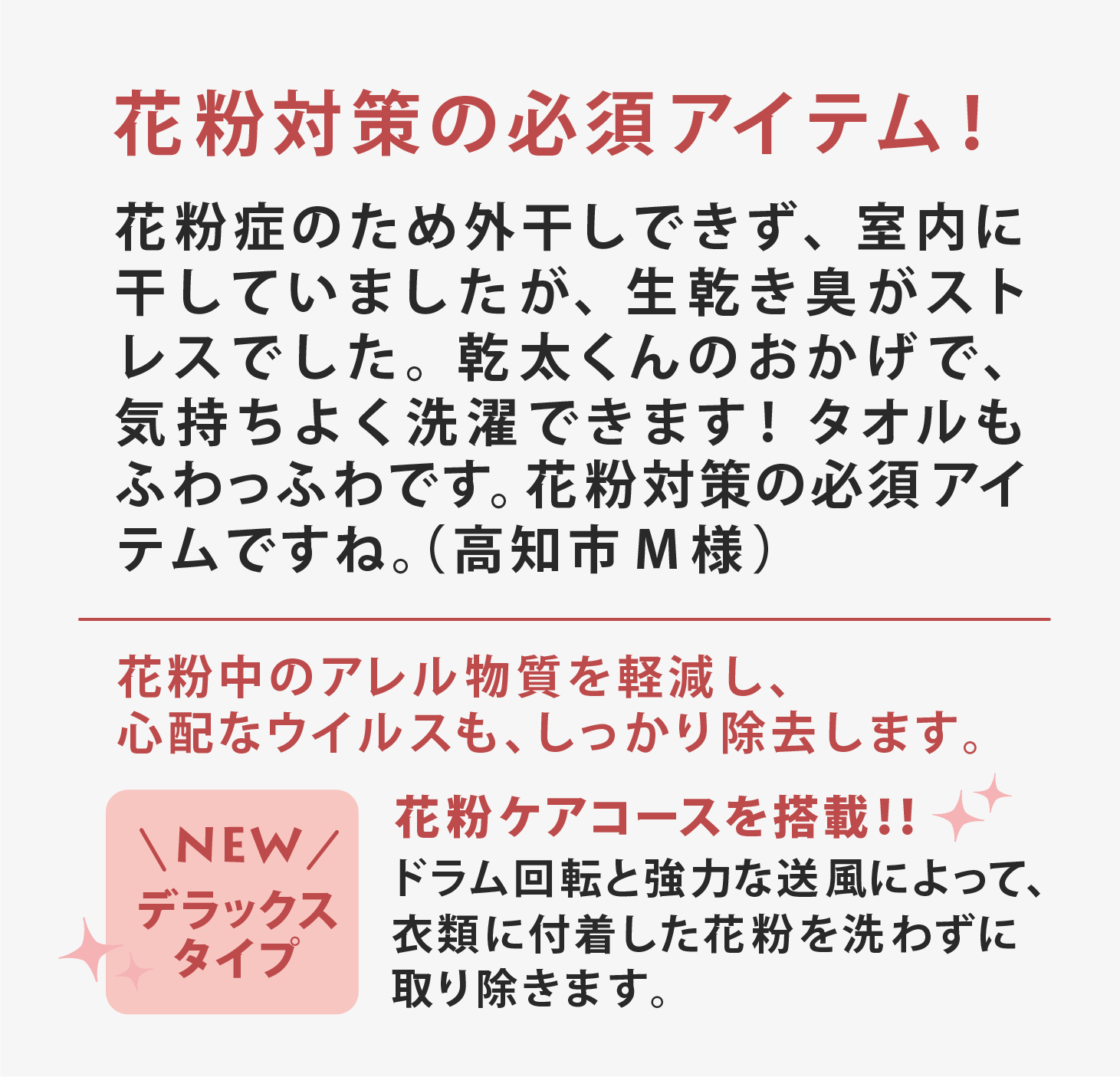 質問1シワがつくんじゃない?/質問2フィルターの手入れが面倒じゃない?/質問3置く場所がない