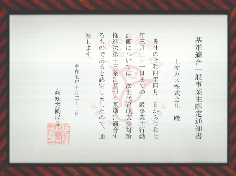 土佐ガス株式会社は「育児休暇・育児休業の取得促進」を宣言し、