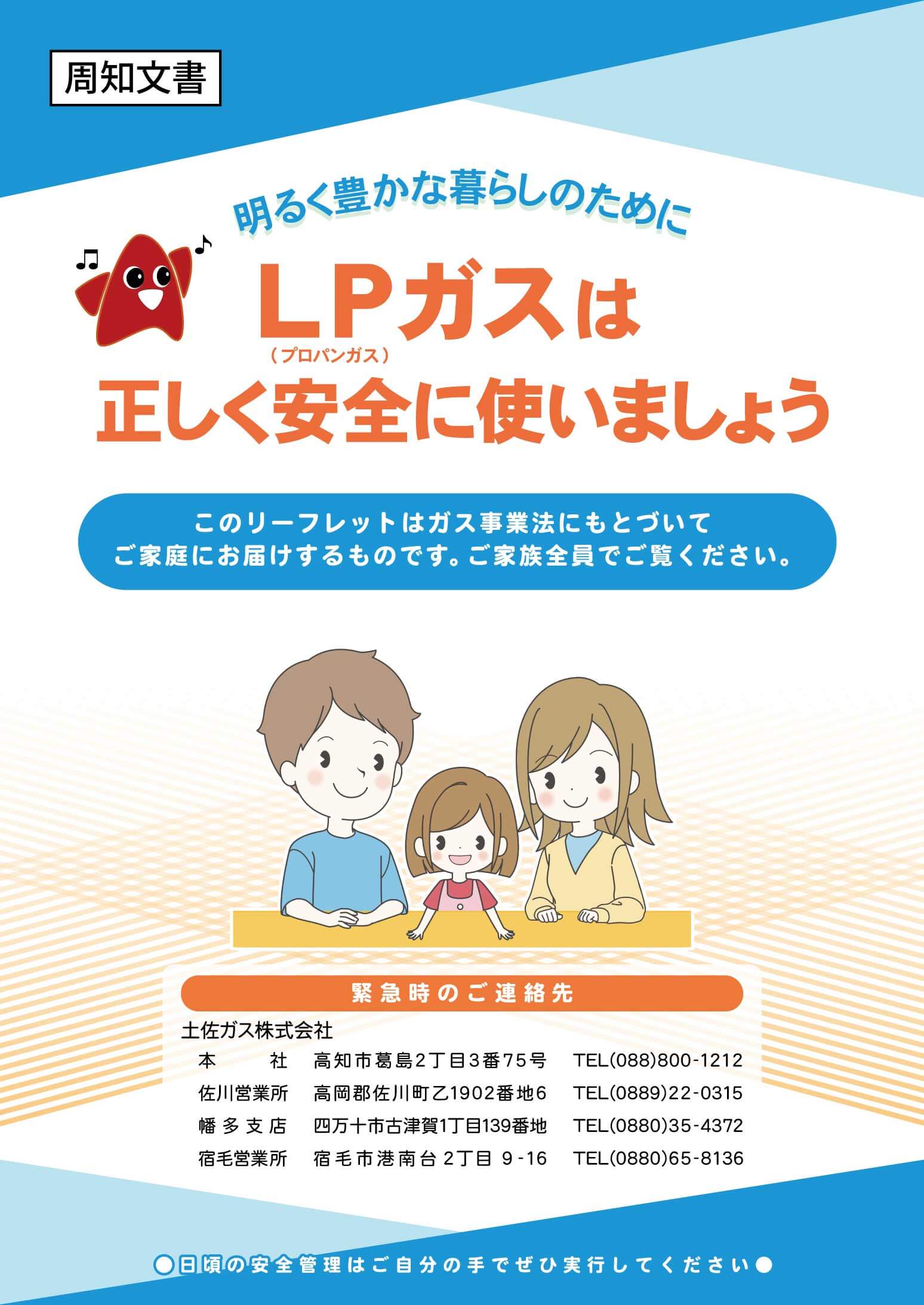 いつなにが起こってもお客様のお役に立てるように、土佐ガスグループでは24時間365日いつでも係員が待機いたしております。ガス臭い、ガス警報器が鳴ったなどの緊急時には、即対応させていただきます。