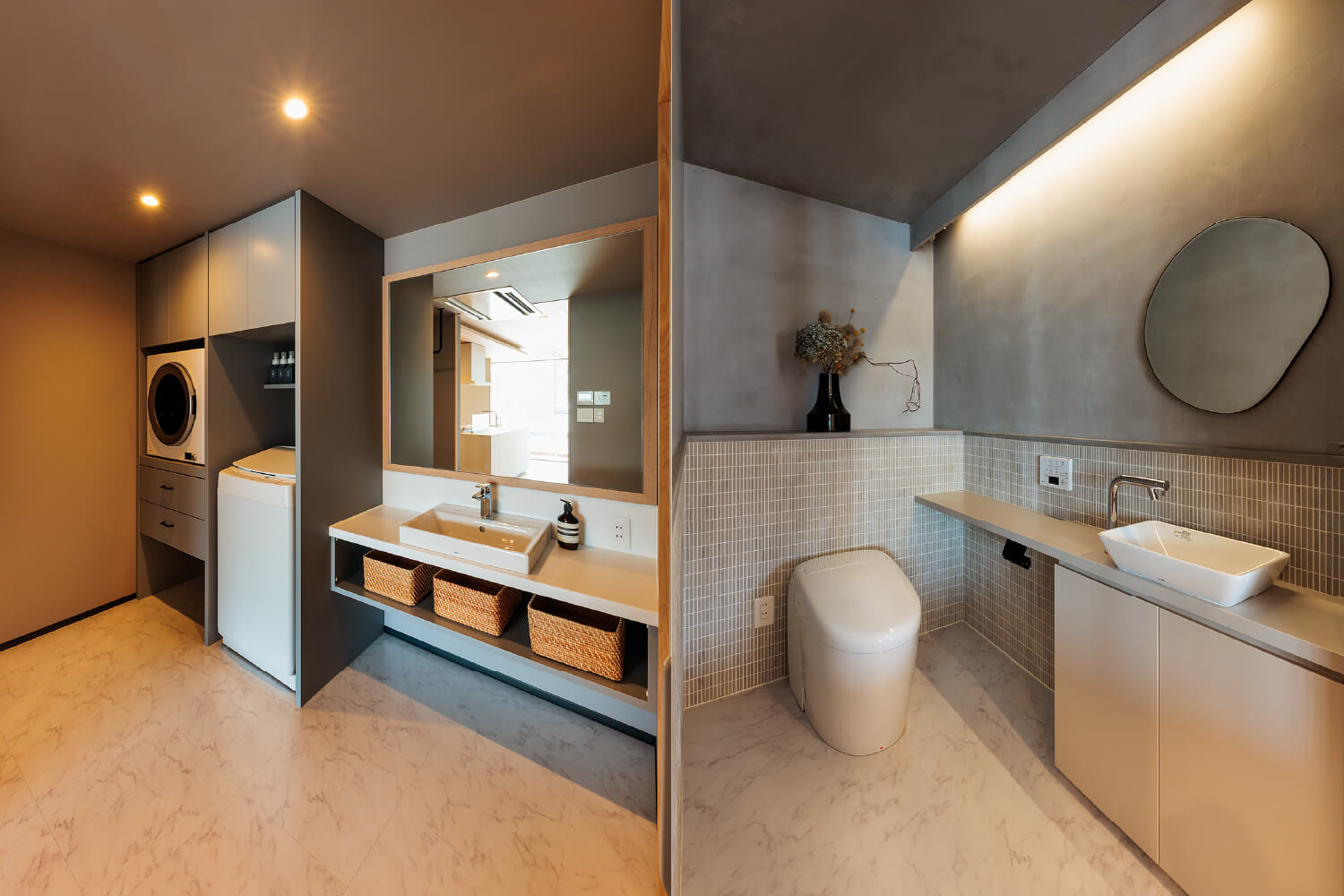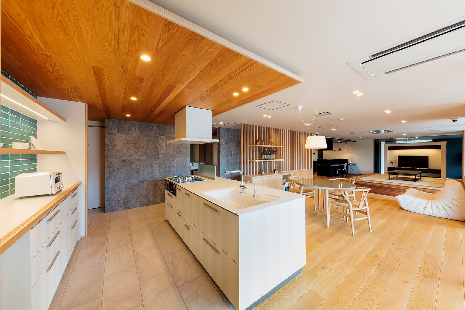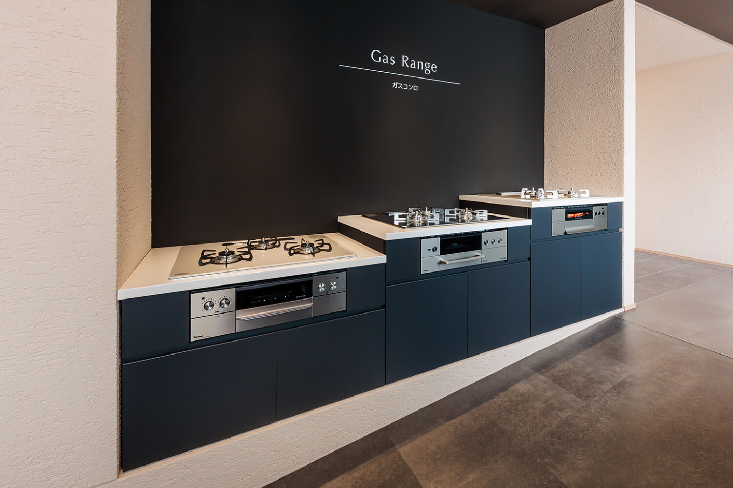 ショールームにはシステムキッチン、洗面台、システムバス、トイレ等の住宅設備機器はもちろんですが、実際の空間提案ができるスペースや天井、壁、床等の建材や照明にも工夫を凝らし、お客様といっしょにリフォームを創りあげるヒントがいっぱいです。