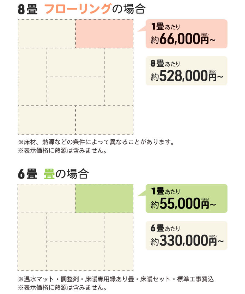 今お使いの畳を床暖専用の畳に入れ替える工法です。